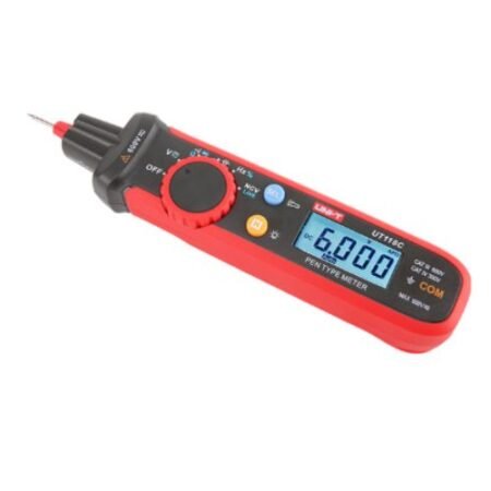 El UNI-T UT118C es un multímetro digital compacto y versátil, diseñado especialmente para quienes buscan portabilidad, rapidez y facilidad de uso en tareas básicas y medias de electricidad y electrónica. Su diseño tipo lápiz lo hace ideal para trabajar en espacios reducidos o de difícil acceso, sin sacrificar funciones esenciales como medición de voltaje AC/DC, resistencia, capacitancia, frecuencia, continuidad y prueba de diodos.
