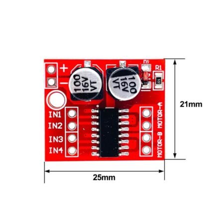 El módulo mini L298 es pequeño y liviano, perfecto para aplicaciones de robótica en miniatura, permite una alimentación de entre 2 a 10V DC lo que permite el funcionamiento de 2 motores DC o de 1 motor paso a paso de 4 hilos